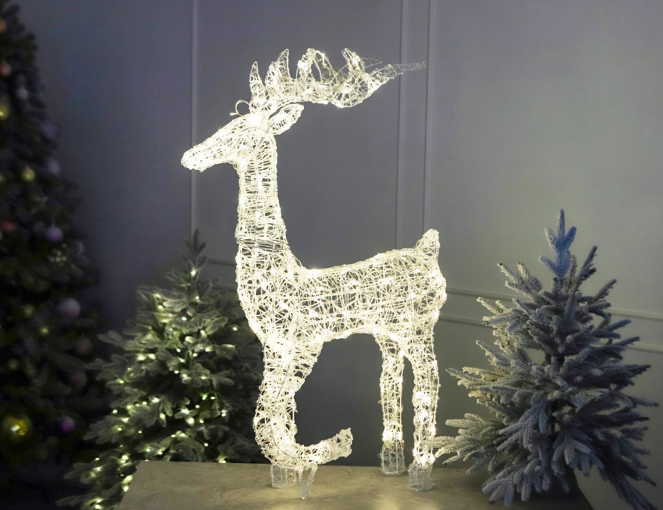 Декоративная светящаяся фигура ОЛЕНЬ МАРТЭН, акриловые нити, 120 тёплых/холодных белых LED-огней мерцающих, 120 см, уличный, Winter Deco