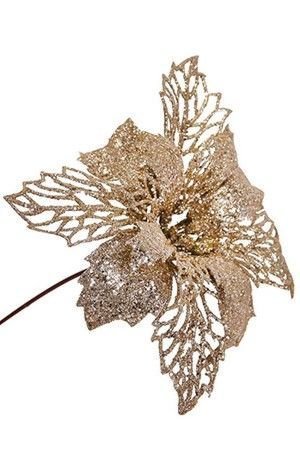 Мерцающие заманчивыми искорками пуансеттии оттенка шампань Стэллари в Новый год выглядят как самые настоящие волшебные цветы, 'распустившись' среди хвойных лап праздничной ели или гирлянды! Изысканный и эффектный аксессуар для стильного декора со сказочными нотками!