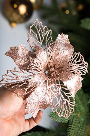 Мерцающие заманчивыми искорками розовые пуансеттии Люссэри в Новый год выглядят как самые настоящие волшебные цветы, 'распустившись' среди хвойных лап праздничной ели или гирлянды! Изысканный и эффектный аксессуар для стильного декора со сказочными нотками!