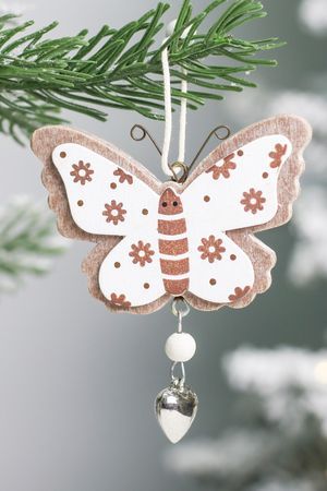 Бабочка Пуансеттия - нежное чудо для вашей ёлки! Только благодаря дизайнерской фантазии бабочка может быть, одновременно, и цветком, 'два в одном' - да! Посмотрите на её изящные крылышки оттенка слоновой кости - они удивительно напоминают лепестки самого знаменитого цветка Рождества! Так пусть же эта бабочка 'расцветёт' в вашем праздничном декоре светлым бликом волшебства!