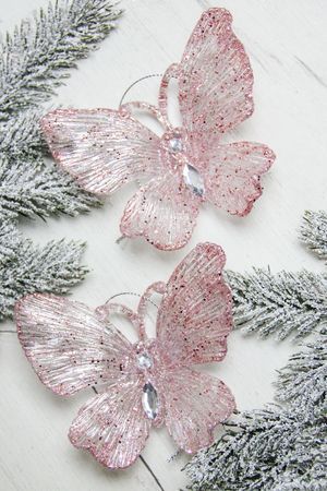 Порхающий символ лёгкости и изящества, беззаботности и очарования! Кажется, что эти две изящные красотки бабочки родились из сверкающего хрусталя, припудрились розовыми искорками и прилетели на праздник!
