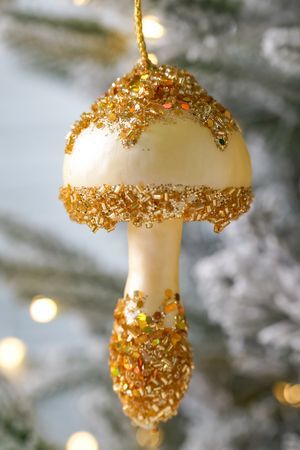 Казалось бы, какая может быть связь между новогодней ёлочкой и грибами? На первый взгляд - никакой. Но ведь зимние праздники - время волшебства, а значит, нарядную ёлочку вполне могут украсить чудесные яркие грибочки. Особенно, если это красавец с золотистой шляпкой, сверкающей россыпью блёсток! Грибочек добавит в декор нотку очарования и напомнит и лете!