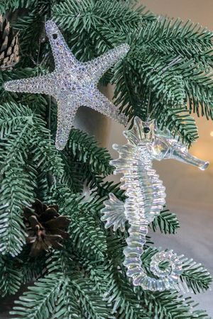Восхитительно изящный и удивительно трогательный морской конёк покинул подводное царство, прихватив с собой подружку - морскую звёздочку и самые чудесные воспоминания о коралловых рифах, чтобы стать обаятельным украшением вашей ёлочки!