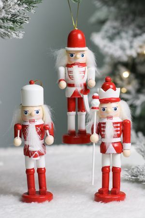 Характеристики: Размер - 12.5 см. Материал - дерево. Цвет - красный, белый. Набор - 3 игрушки. Цена указана за набор.