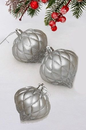 Мерцающая глиттером изящная ёлочная верхушка, обаятельные рельефные луковки, разнофактурные шары и элегантная пара сосулек - великолепный серебряный ансамбль, сохранивший поистине блестящие традиции!