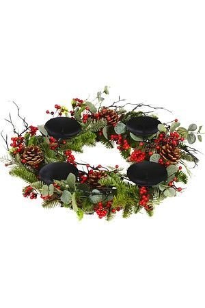 Характеристики: Размер: 19*9 см. Материал: натуральные шишки, искусственные ягоды, веточки хвои. Свеча в комплект не входит.
