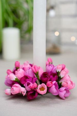 А вы знаете, что любимые всеми весенние крокусы и шафран - одно и то же растение? Да-да, именно высушенные рыльца этих цветочков с древности используют как пряность! Природа - уникальный творец и любые цветы - уникальное и универсальное украшение, способное создавать чудесное настроение в любую погоду. Конечно, это верно и для цветков шафрана: зажигая свечи для романтического ужина или семейного торжества, украсьте каждую вот таким розовым венком и насладитесь летним цветением и теплом, даже если за окном бушует непогода!