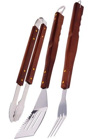 Блистательное BBQ-Трио готово 'сыграть' в ансамбле с вашим мангалом! Какие бы блюда вы не планируете приготовить на углях - мясо, рыбу или овощи - с помощью специальных щипцов, лопатки и вилки вы сможете производить любые необходимые манипуляции в процессе! Разложить на раскалённой решётке, перевернуть, проверить готовность, разложить по тарелкам, и всё это- стильно, красиво, удобно!