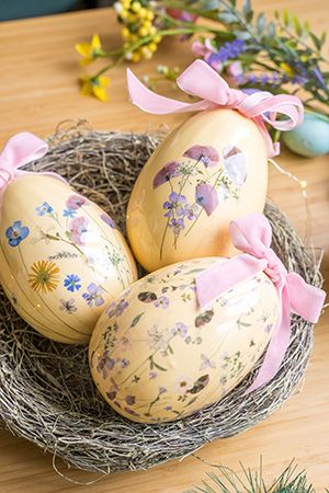Сколько же утончённой красоты и необыкновенной нежности дарит цветущий луг, украсивший образами свих дивных 'обитателей' эти прелестные пасхальные яйца! Тут и нежность весеннего пробуждения, и обещание тёплого лета, полного солнца и радости! Замечательное украшение для пасхального декора - такие декоративные яйца с мягко-бархатными ленточками прекрасно будут смотреться и в праздничной корзинке или композиции, и на пасхальном деревце, и подарком, разумеется, они станут чудесным!