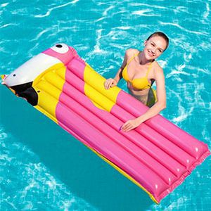 Плавательный матрас надувной для детей и взрослых. Забавный принт в виде фламинго. Удобная подушка. Комфортная ширина. Нескользкий гипоаллергенный материал. |