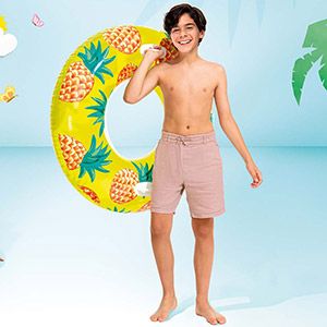 Плавательный круг выдерживает до 80 кг. Реалистичный принт ананасов на верхней части.
