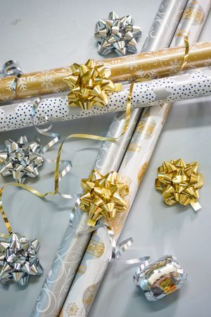 Характеристики: В наборе: 4 рулона упаковочной бумаги, 2 ленты, 7 бантов. Размер бумаги: 200*70 см. Размер ленты: 5 мм*10 м.