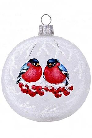 Стеклянный елочный шар с ручной росписью. Диаметр шара - 75 мм Цвет фона - белый Материал: стекло.