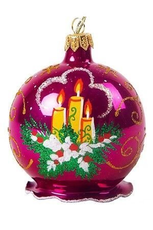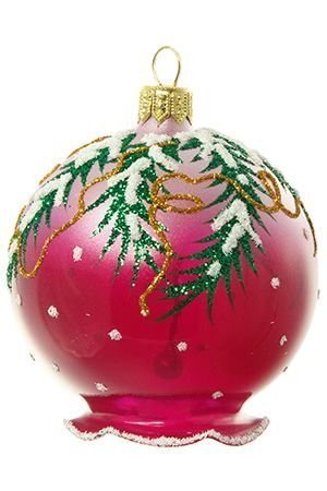 Новогодний шар из стекла с ручной росписью. Диаметр шара - 75 мм. Цвет - вишневый. Упаковка - подарочная коробка. Материал: стекло.