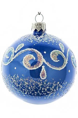 Стеклянный елочный шар с ручной росписью. Диаметр шара - 75 мм Цвет - Голубой Материал: стекло.