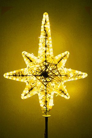 Верхушка на высотные елки ЗВЕЗДА СВЕТОДИОДНАЯ представляет металлический каркас, оформленный светодиодной гирляндой с крупными суперяркими светодиодами. LED лампы хорошо видны не только в сумерках или темноте, но и в светлое время суток. Напряжение 24V, многофункциональная светодинамика. Нарядная верхушка придает новогоднему дереву величие и торжественность.