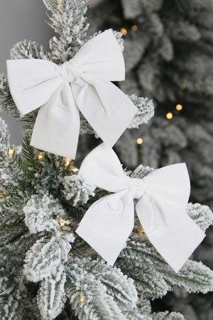 Изящный бант мерцает снежным великолепием, создавая восхитительную атмосферу новогоднего волшебства и утонченной роскоши!