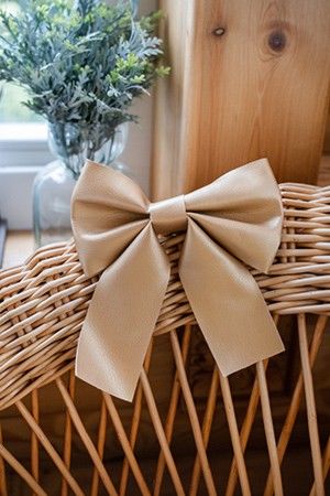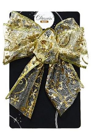 Золотой бант с оригинальной фактурой гармонично впишется в любое дизайнерское решение – захотите ли вы украсить праздничный стол, шторы или иные детали интерьера. Подойдет и для новогодней елки, и для рождественского венка, и для гирлянды.