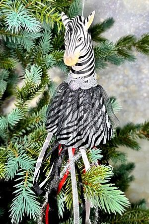 Грациозная зебра самая, что ни на есть, настоящая кокетка! Ах, эти рюшечки, ах эти ленточки, ах этот игривый прищур глаз - прелесть, что такое! Где она только не кокетничала, но вот новогодней ёлке пока что ещё не доводилось - срочно нужно исправить это грандиозное упущение!
