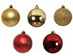Набор пластиковых шаров в классической нарядной красно-золотой новогодней гамме.