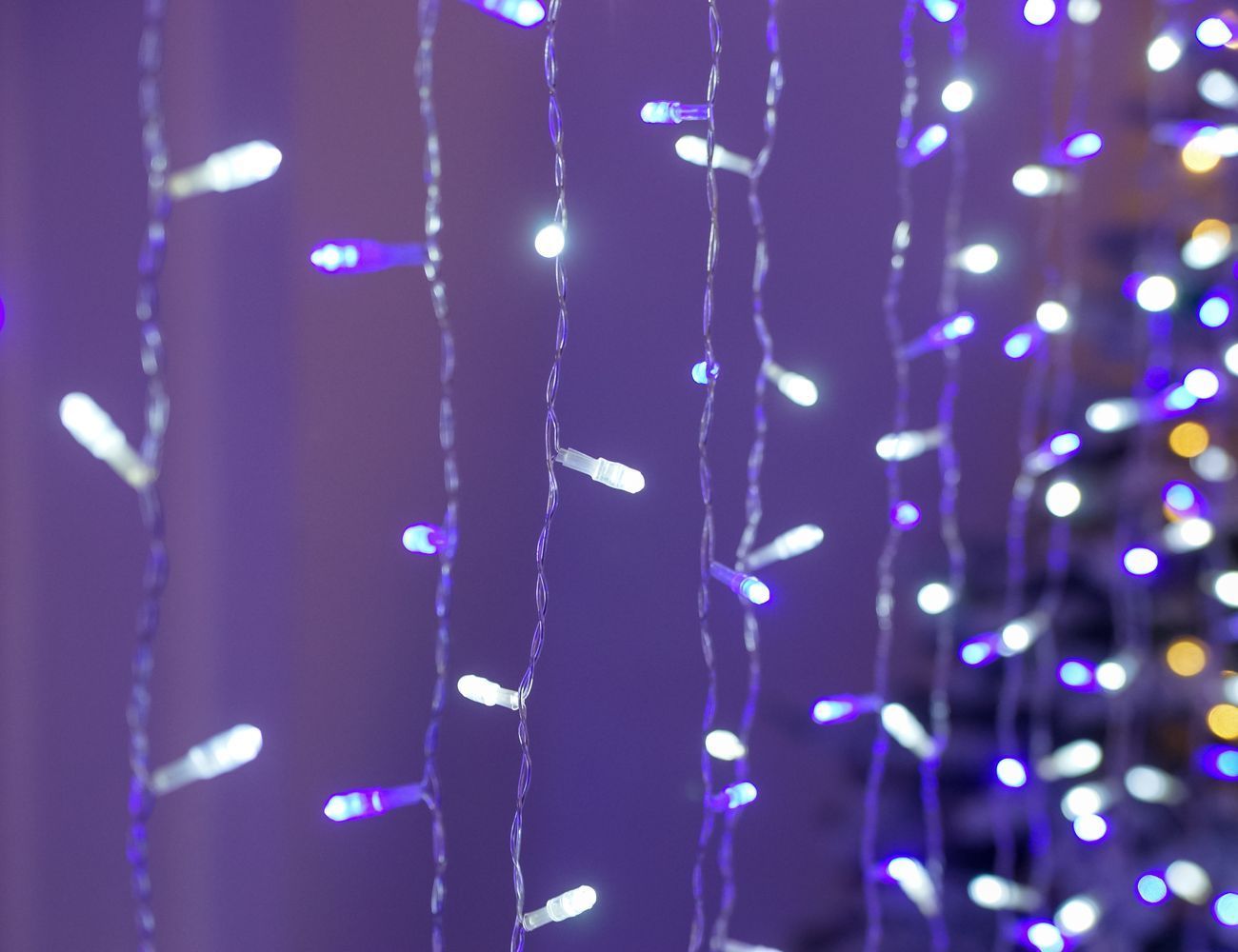 Цвет LED лампочек - холодный белый и синий. Нити с синими и белыми лампочками чередуются