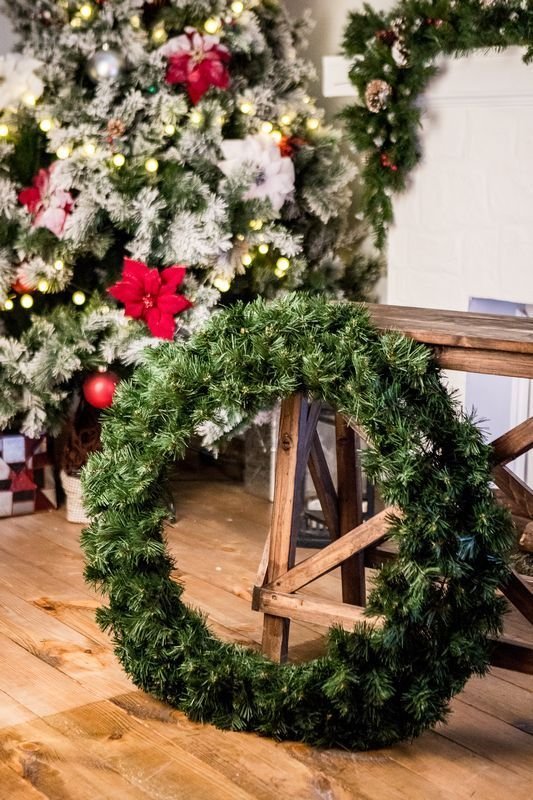 Венок РОЖДЕСТВЕНСКИЙ сформирован из пушистых еловых отростков с плотной, упругой хвоей насыщенного зеленого цвета. Просвечивающая сквозь иголки "древесина" и имитация побегов на концах отростков, подчеркивает естественность и декоративность этого новогоднего украшения. Этот венок можно повесить на стену, украсив дождем, елочными шарами и колокольчиками, мишурой или электрогирляндой. Можно использовать как потолочный декор. Украшенные венки большого диаметра придают интерьеру неповторимо роскошный праздничный стиль.