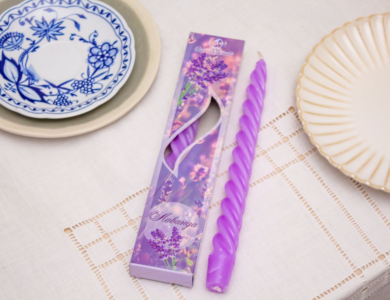 Ароматические витые свечи ЛАВАНДА, 24.5 см (упаковка 2 шт.), Омский Свечной