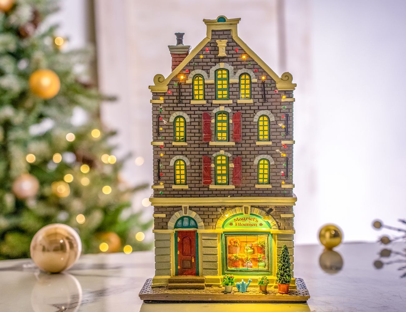 Фасад 'Цветочный магазинчик Мэгриет', свет, 29х17х8 см, батарейки, LEMAX