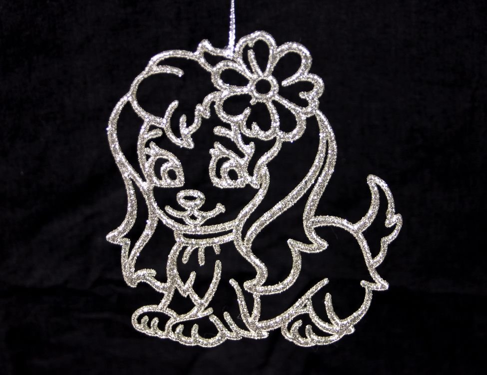 Елочное украшение НОВОГОДНЯЯ СОБАЧКА серебряная, 12х10 см, -Морозко