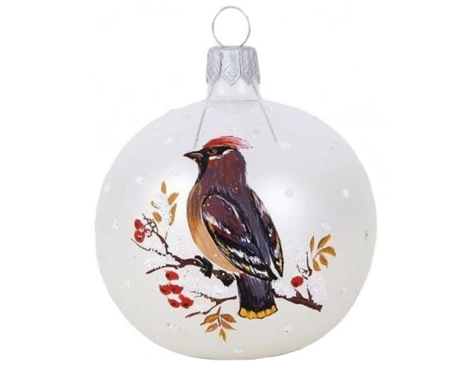 Стеклянный елочный шар с ручной росписью.
