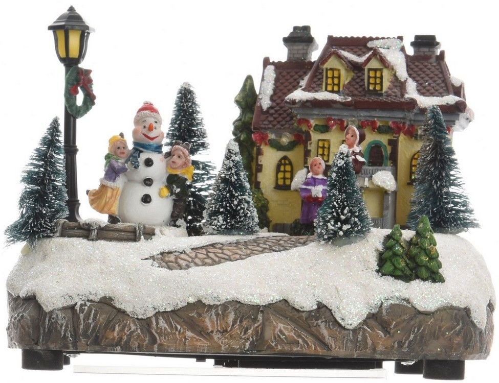 Светящаяся миниатюра ПРАЗДНИК ВО ДВОРЕ со Снеговиком, полистоун, с LED-огнями, динамика, 19x13 см, батарейки, Kaemingk (Lumineo)