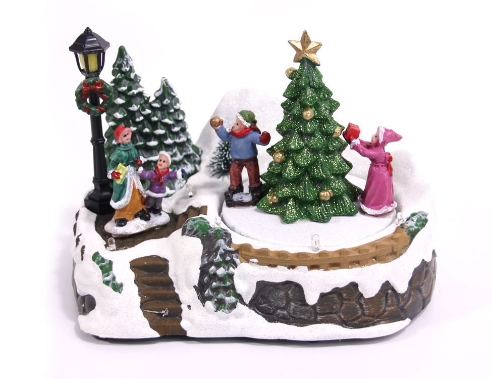 Светящаяся электромеханическая миниатюра ЁЛКА, с динамикой и LED-огнями, 12x17x14 см, батарейки, Kaemingk (Lumineo)