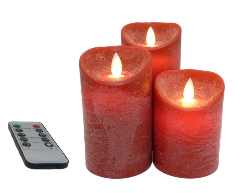 Набор из трех восковых LED свечей красного цвета с колышущимся (живым) пламенем, таймером, диммером и ПДУ.