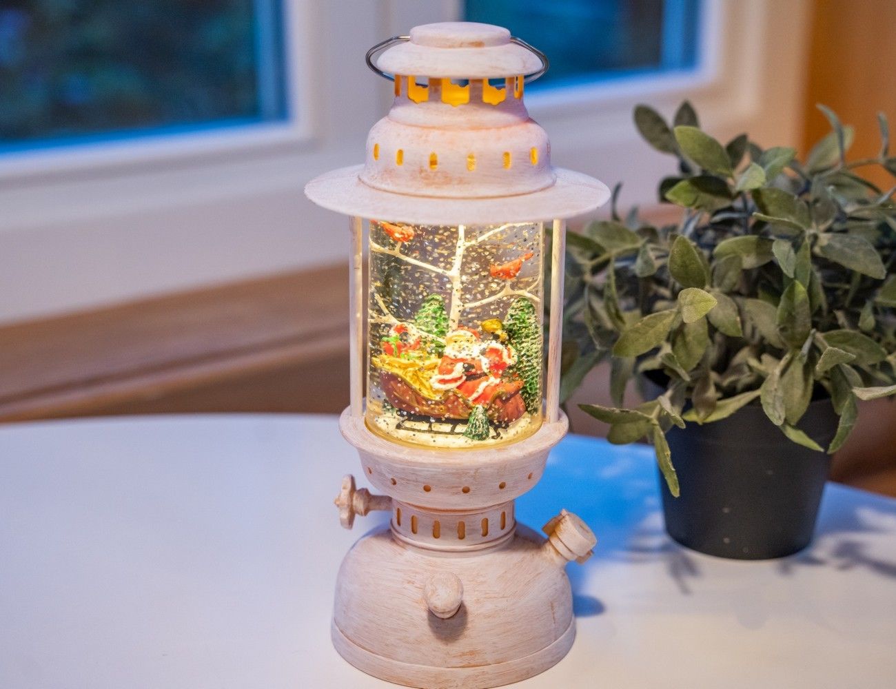 Винтажная 'снежная' лампа САНТА В САНЯХ, тёплая белая LED подсветка, 26 см, пластик, батарейки, Peha Magic