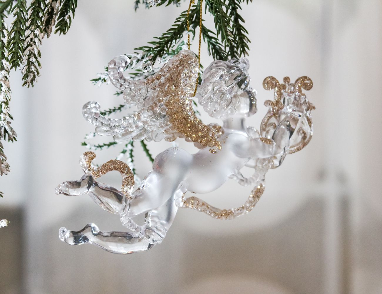Ёлочное украшение МУЗЫКАЛЬНЫЙ АМУРЧИК, акрил, прозрачно-матовый с золотом, 14 см, разные модели, Forest Market