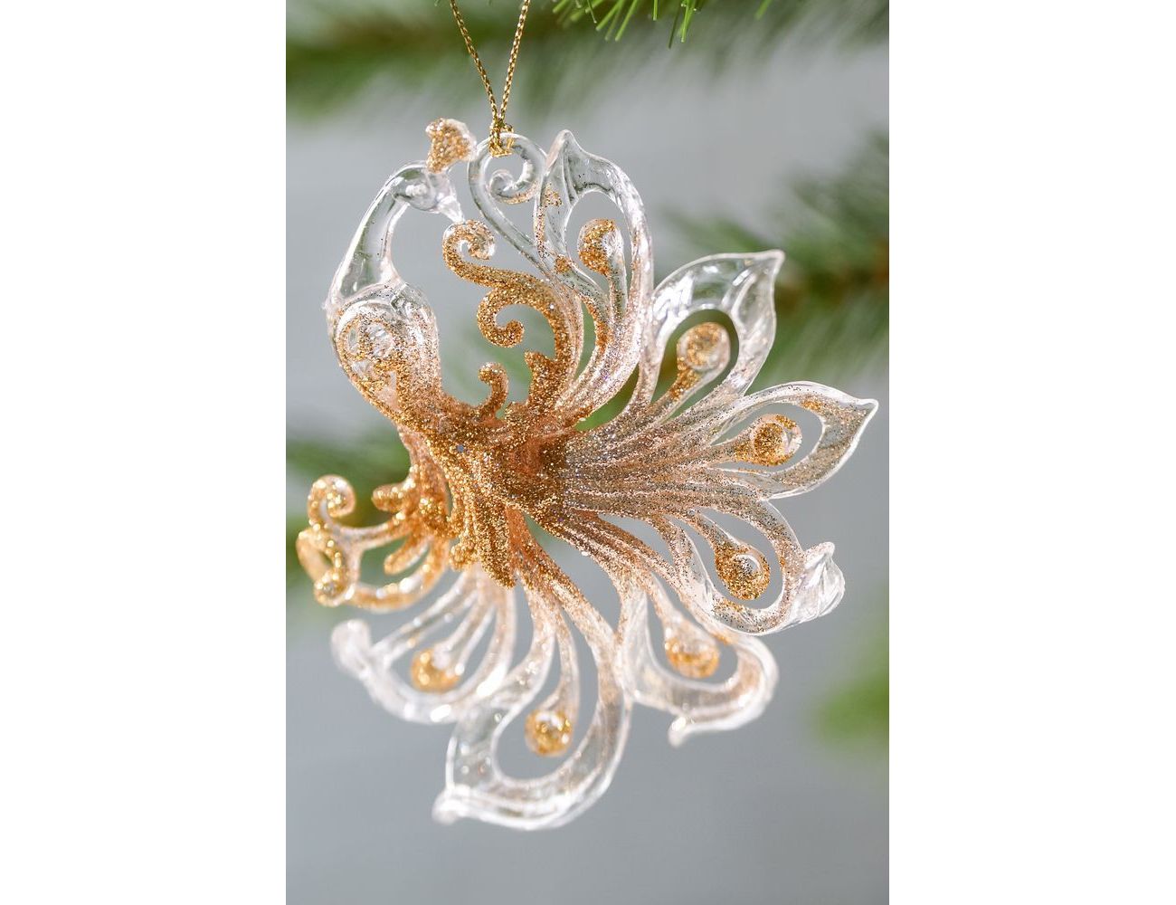 Ёлочное украшение ПАВЛИН, акрил, прозрачный с розовым золотом, 12-15 см, разные модели, Forest Market