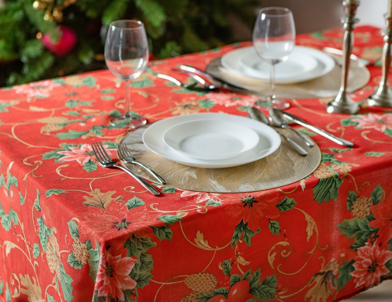 Скатерть НОВОГОДНЕЕ НАСТРОЕНИЕ красная, полиэстер, 180х130 см, Koopman International