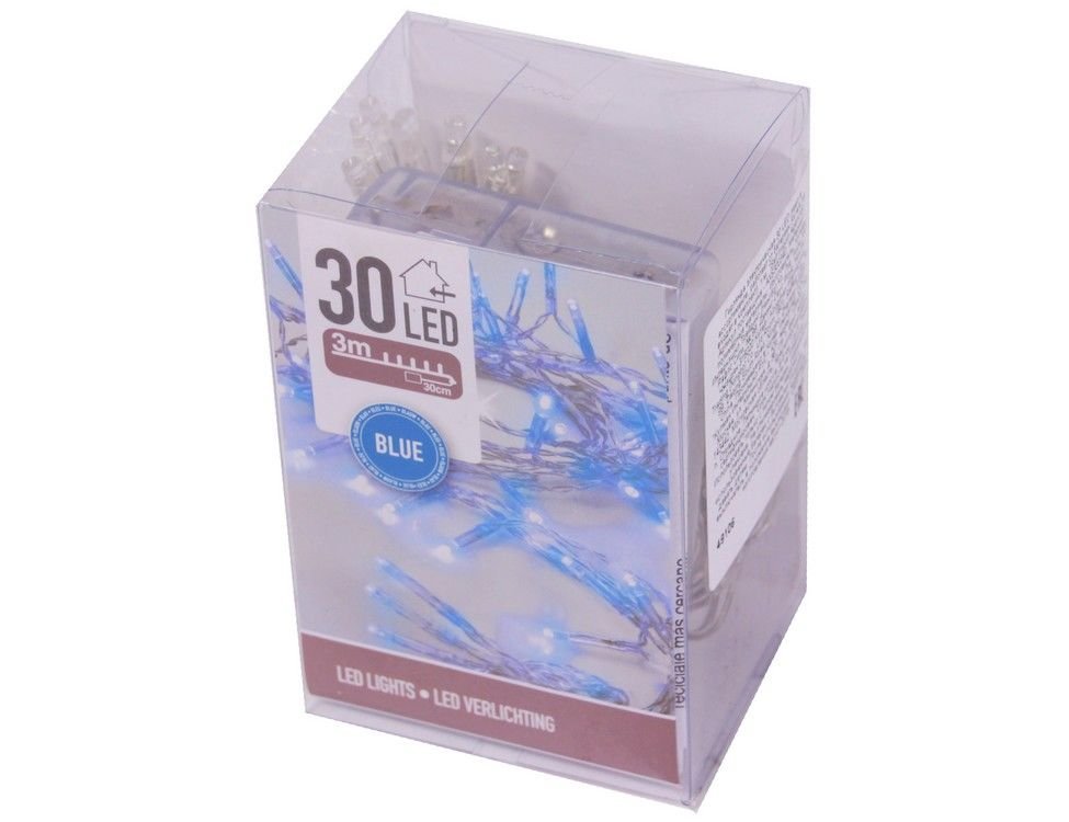 Светодиодная гирлянда РАЗНОЦВЕТНАЯ КАПЕЛЬ, 30 синих LED ламп, 3+0,3 м, прозрачный провод, батарейки, Koopman International