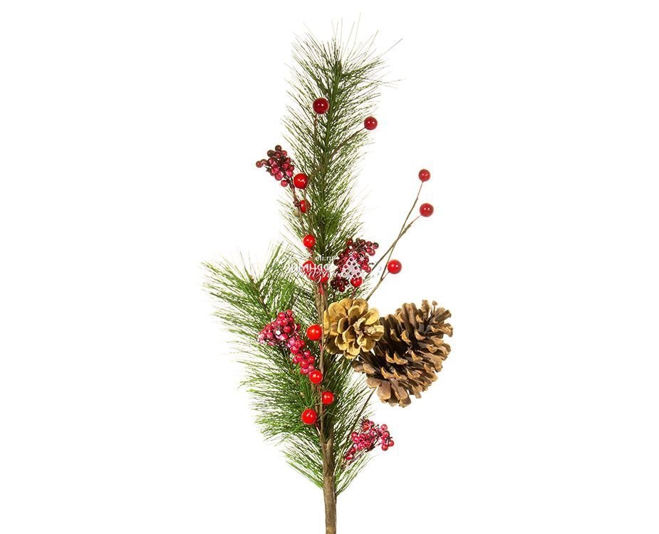 Декоративная ветка ЗИМНИЙ КОНТРАСТ зеленая, хвоя - леска, 75 см, Koopman International
