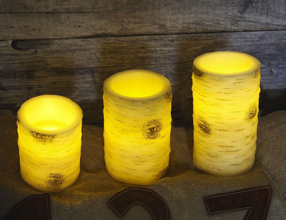 Электрическая восковая свеча БЕРЁЗОВЫЙ ШАРМ, тёплый белый LED-огонь мерцающий, таймер, 7.5х12.5 см, STAR trading