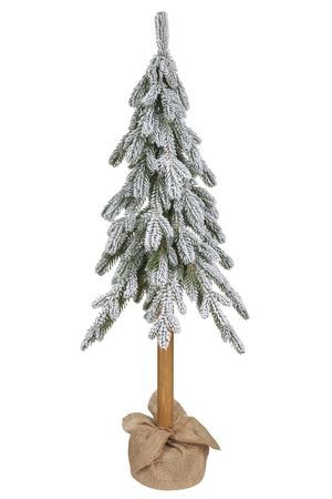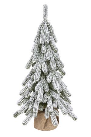Настольная ель КЭМБРИДЖ в холщёвом мешочке (100% литая хвоя), зелёная заснеженная, 35 LED-огней, 75 см, батарейки, National Tree Company