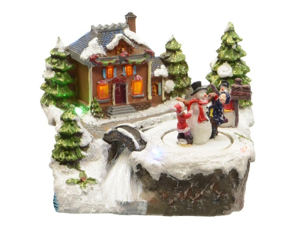 Светящаяся миниатюра РОЖДЕСТВЕНСКИЕ УДОВОЛЬСТВИЯ - ЛЕПИМ СНЕГОВИКА с LED-огнями и динамикой, 19х16х15 см, Kaemingk (Lumineo)