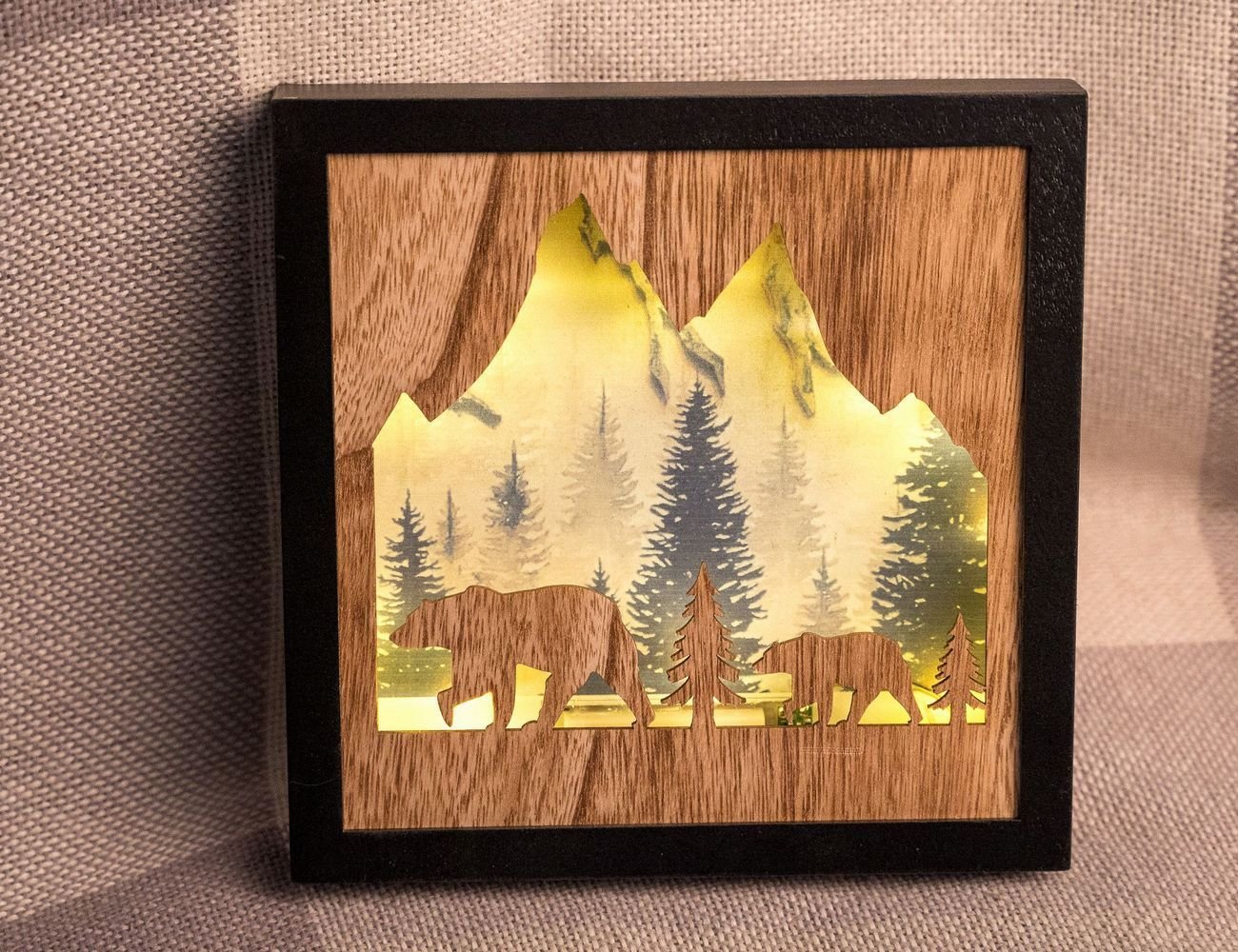 Светящаяся декорация ЛЕСНАЯ СЕМЬЯ - МЕДВЕДИ, 10 тёплых белых LED-огней, 20x20, таймер, батарейки, Kaemingk