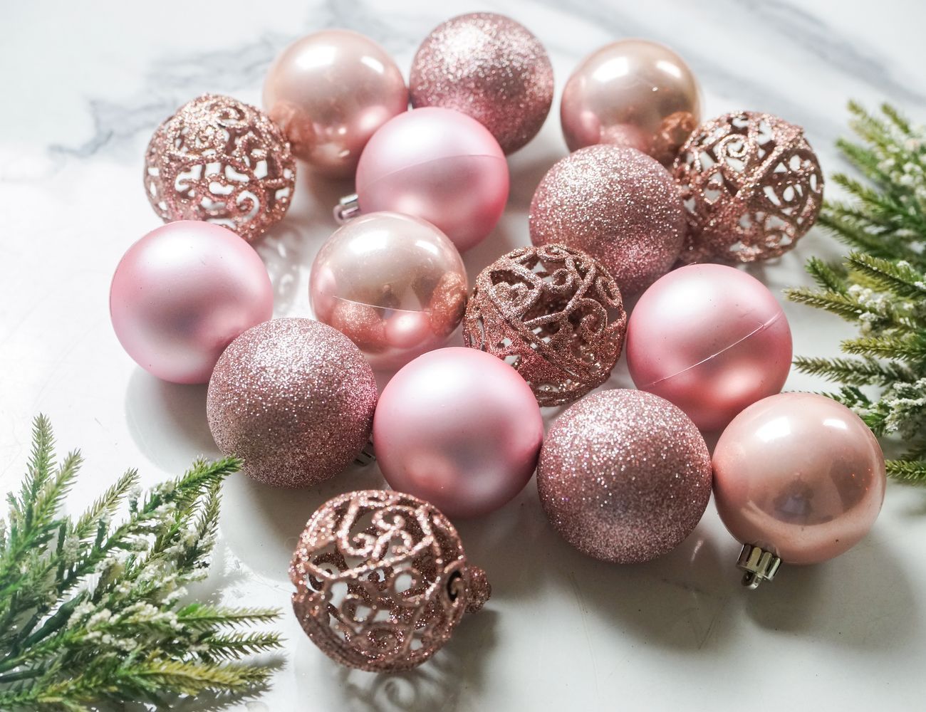 Набор пластиковых шаров АНСАМБЛЬ С ИЗЮМИНКОЙ (глянцевые, матовые, с глиттером), цвет: нежно-розовый, 60 мм, 16 шт., Kaemingk