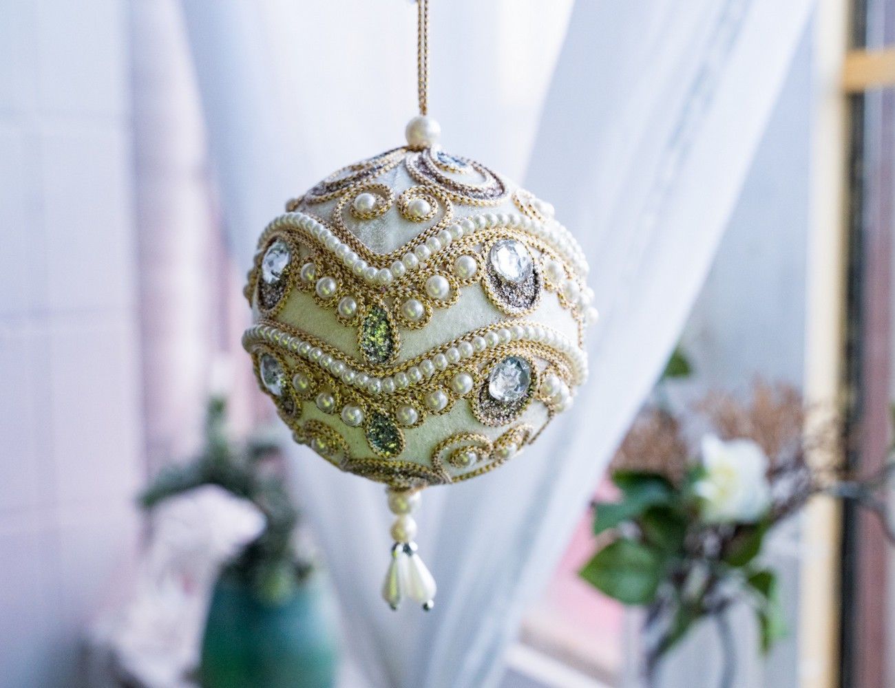 Романтичное обаяние этого изысканного ёлочного украшения складывается из сливочной нежности, благородной изысканности и кокетливых ноток французского дворцового шарма!