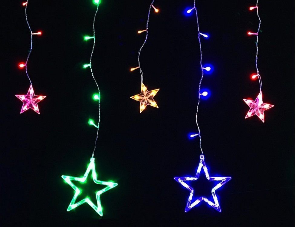 Гирлянда состоит из основного провода, закрепляемого горизонтально, с которого свисают отрезки провода разной длины с цветными LED-лампами-звёздочками. Длина свисающих нитей 0.6-1 м.
