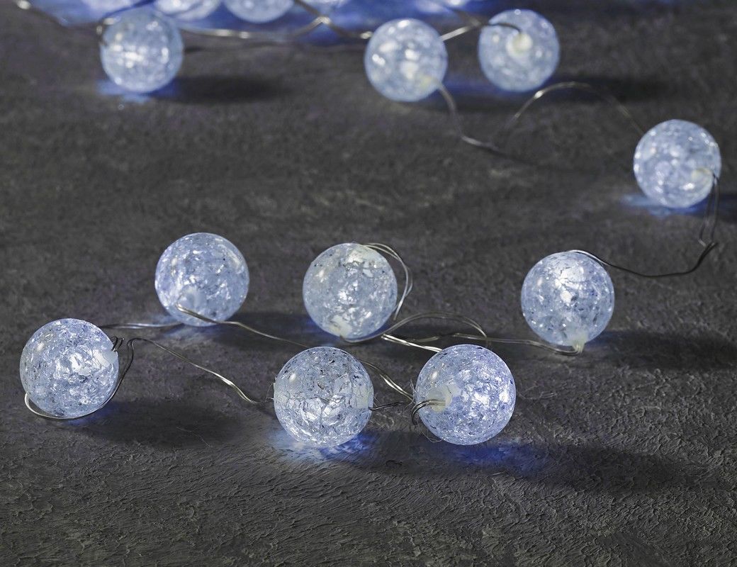 Электрогирлянда ШАРИКИ-КРАКЛЕ, 30 холодных белых LED-огней, 3+3 м, серебряная проволока, Edelman