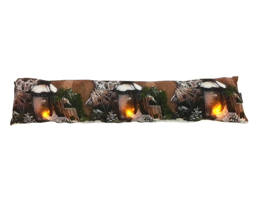 Удивительная подушка с чудесной праздничной композицией со светящимися фонариками! Предназначена она для того, чтобы удерживать окно приоткрытым (window stopper), если есть такая необходимость. Но это в условиях теплой Европы. Нам же такая подушка может пригодиться как защита от ветра или как декоративный элемент. Благодаря ей, даже в самый сильный мороз от окна будет веять праздничным уютом и теплом!