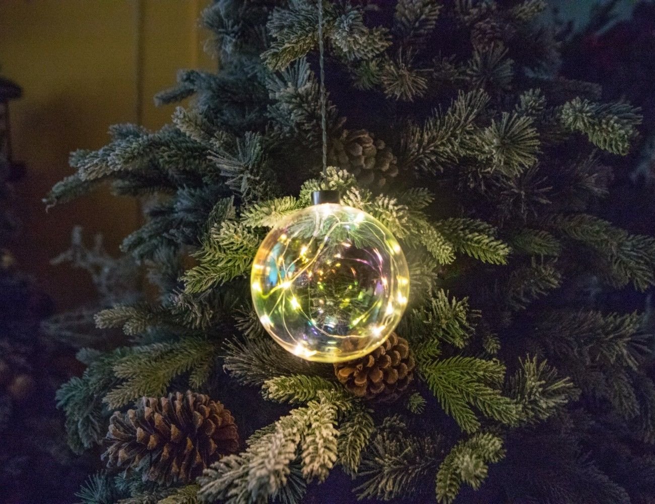 Светящийся ёлочный шар ПЕРЛАМУТРОВЫЙ ШАРМ, стекло, 10 тёплых белых микро LED-огней, 12 см, батарейки, Peha Magic