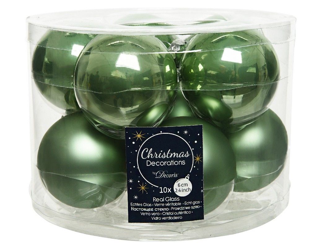 Набор стеклянных шаров матовых и эмалевых, цвет: эвкалиптовый, 60 мм, упаковка 10 шт., Kaemingk